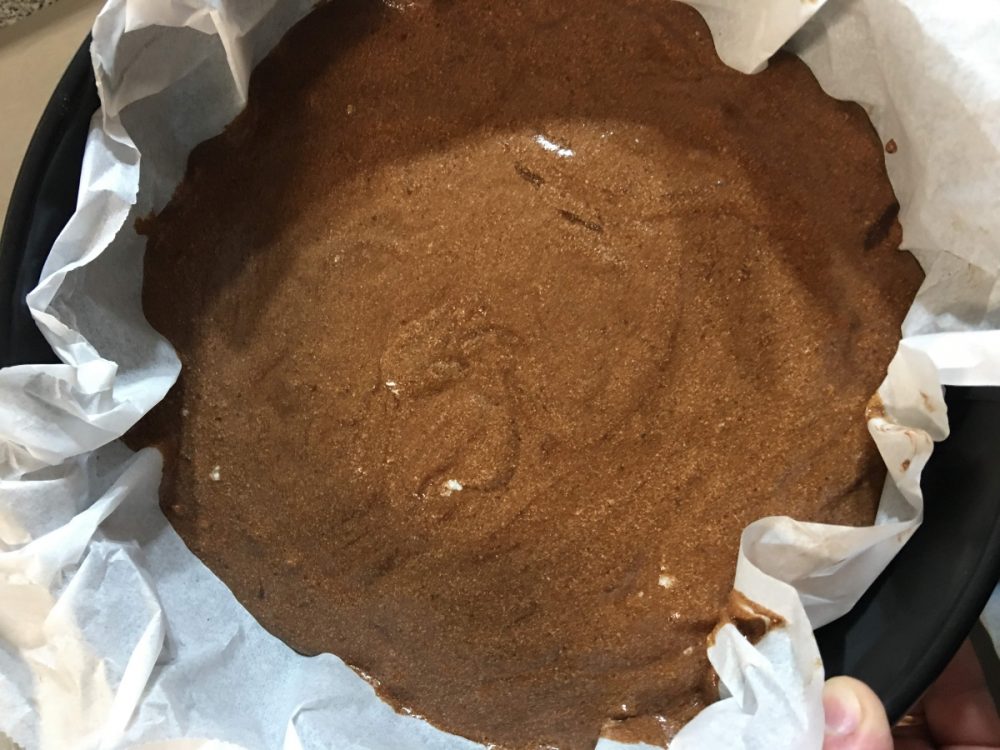 - Coloque numa forma com aro amovível e com papel vegetal ou bem untada com manteiga e polvilhada com farinha.