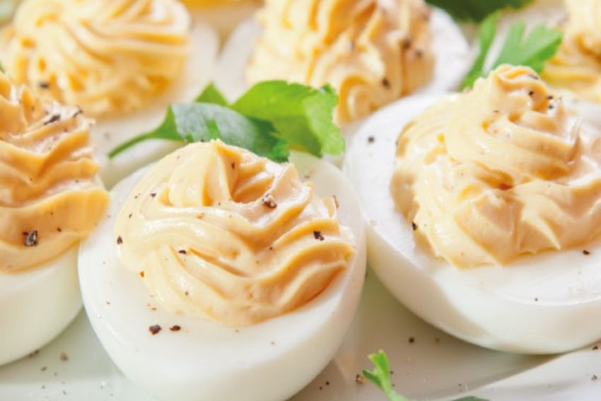 Por fim, use um saco de pasteleiro para dispor o recheio nas metades das claras cozidas e não se vai arrepender de ter feito esta iguaria!